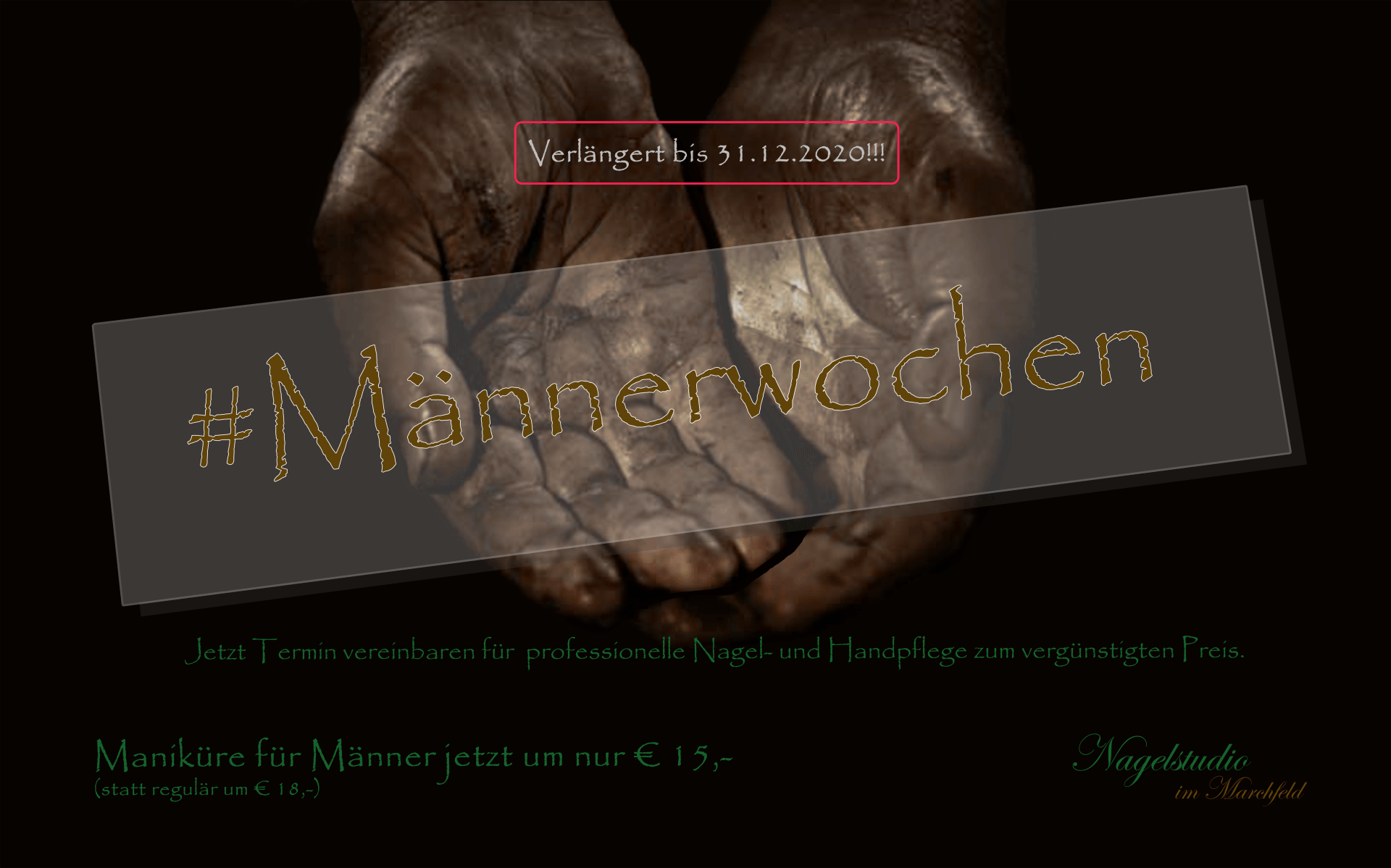 vereinbaren für professionelle Nagel- und Handpflege zum vergünstigten Preis. Maniküre für Männer jetzt um nur € 15,- (statt regulär um € 18,-)